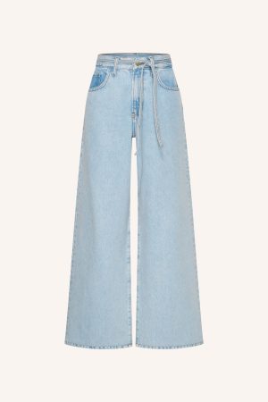 Homage To Denim Mid Waist Wide Leg Jeans With Big Studs