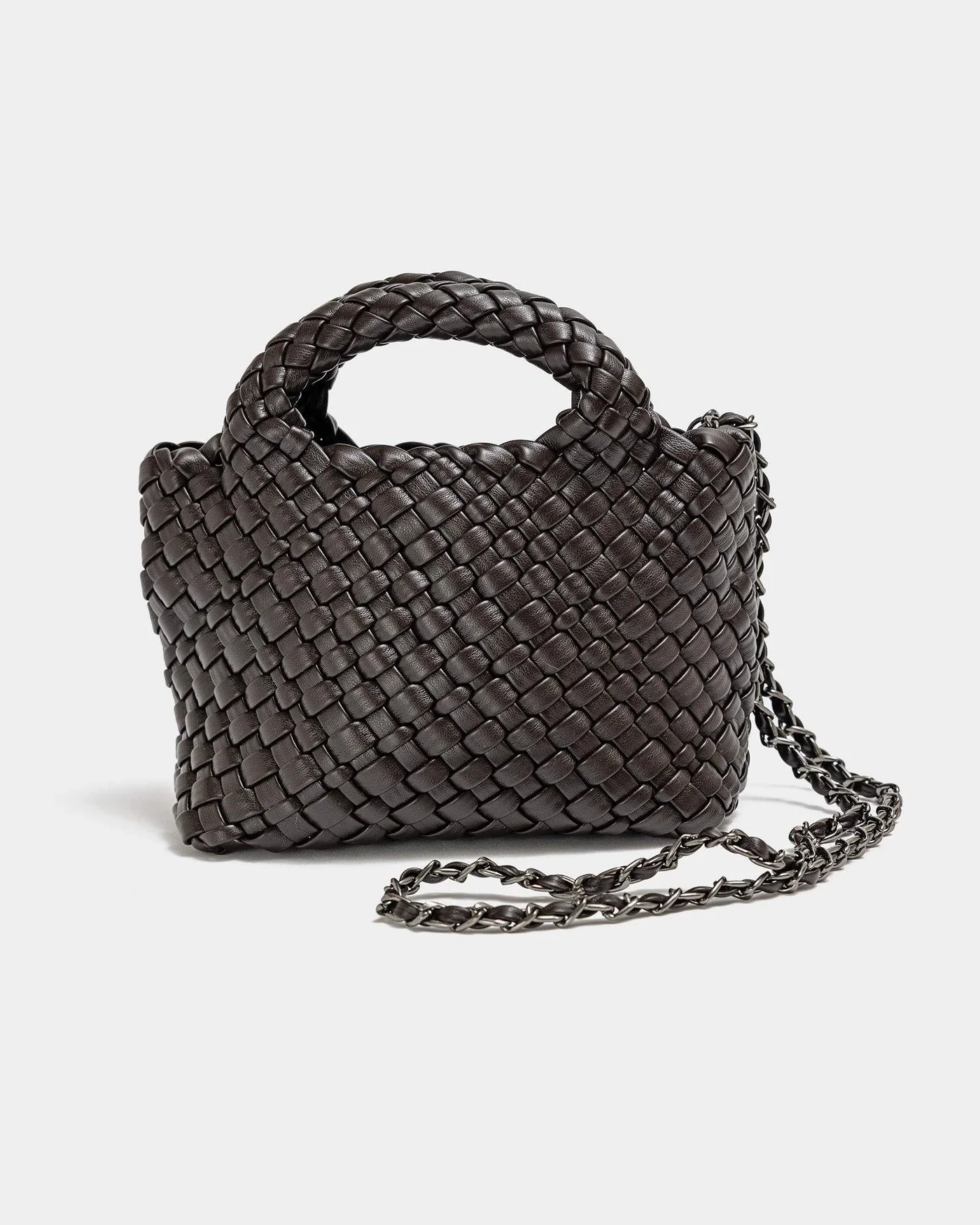 Mia Mini Bag is het schattige kleine zusje in de familie van “Mia Bags” met zijn opvallende gevlochten stof in het zachtste imitatieleder. Bij de tas wordt een kettingriem geleverd die met sluitingen kan worden verwijderd of als schoudertas kan worden gebruikt.