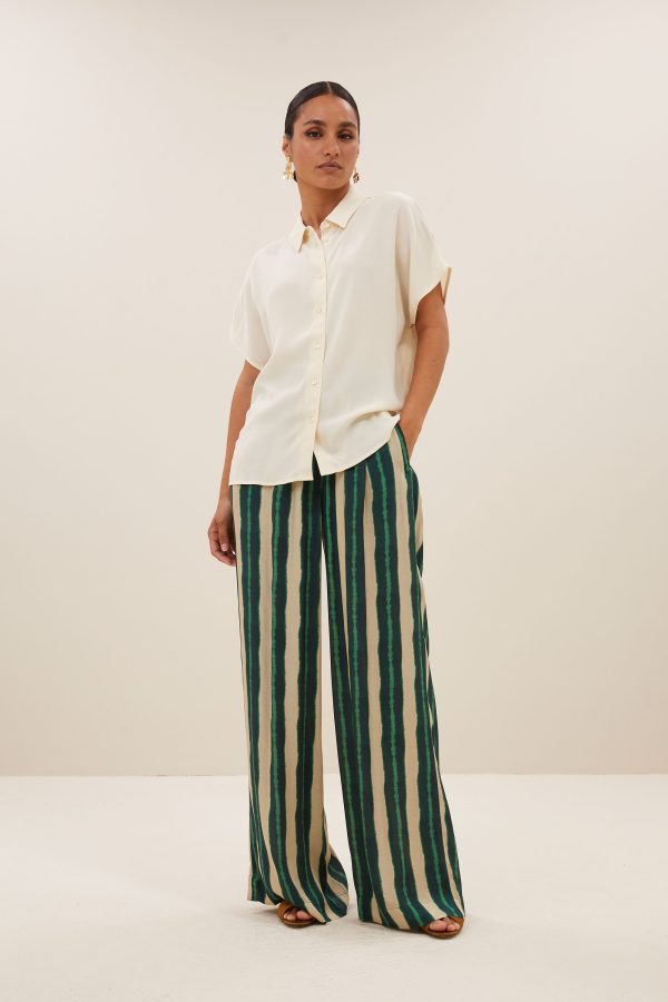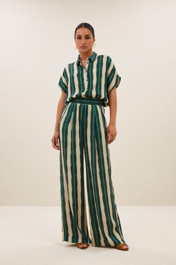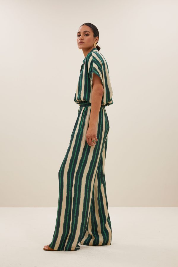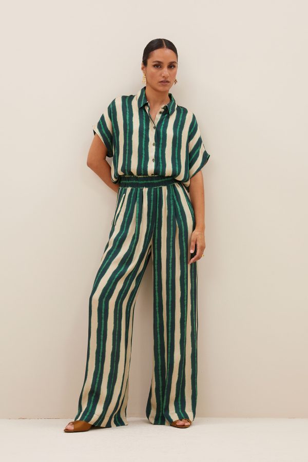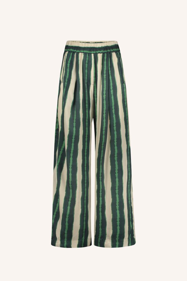 Ontdek de Benji Tie Dye Pants in een prachtige groene gestreepte print! Deze casual broek is perfect voor elke gelegenheid. Met een elastisch smokdetail en verborgen steekzakken bieden ze niet alleen stijl, maar ook comfort. De lange lengte en rechte pasvorm zorgen voor een elegante look, terwijl de losse fit je de vrijheid geeft om te bewegen.