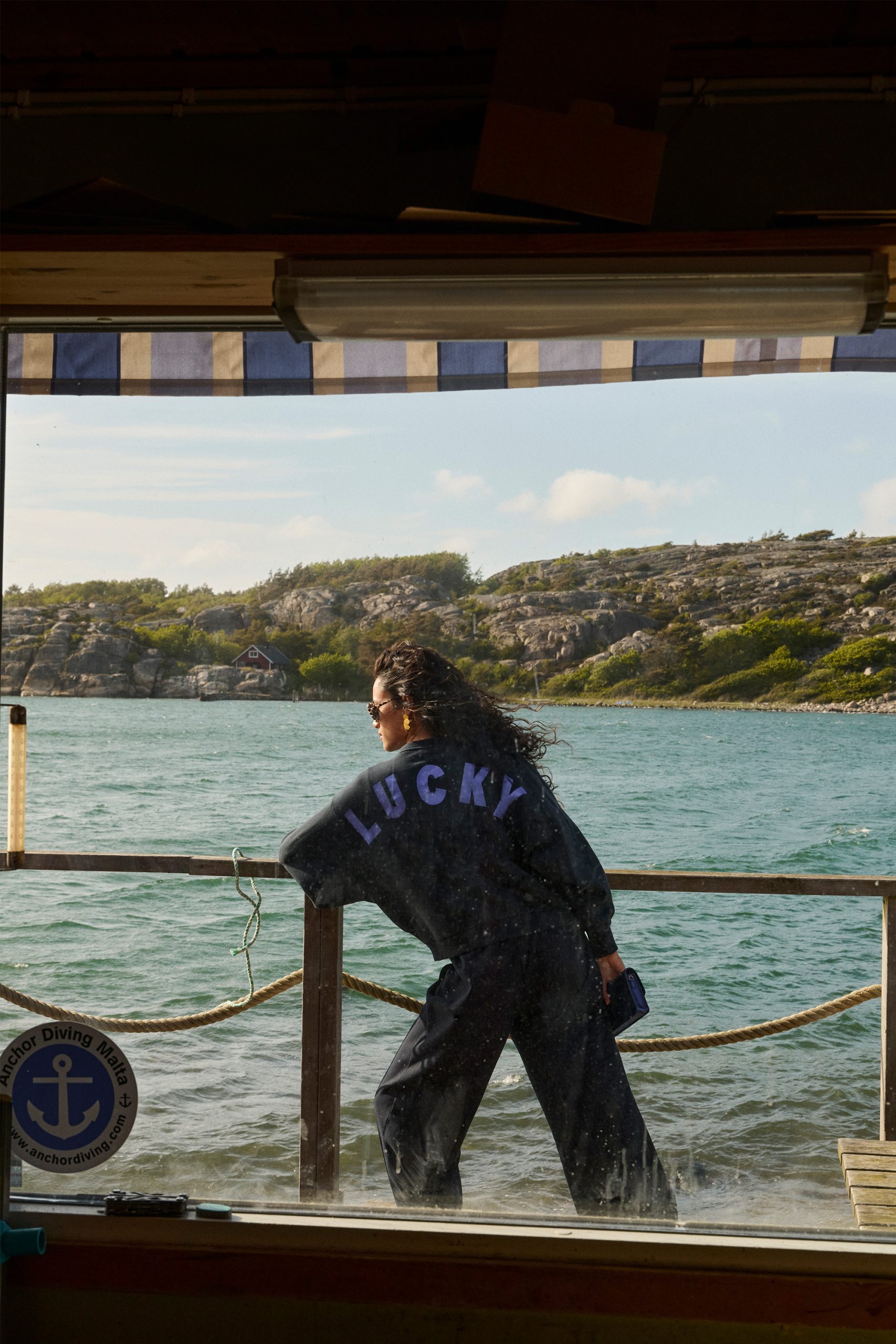 Lucky! Bibi lucky curve sweater, een casual must-have voor elke garderobe. Deze oversized sweater met ronde halslijn en lange mouwen biedt een relaxte, losvallende pasvorm die perfect is voor een comfortabele, stijlvolle look. Het artwork op de achterkant en het kleine logo op de borst geven een elegante touch, terwijl de verlaagde schoudernaden zorgen voor extra draagcomfort. Een tijdloze klassieker voor elke casual gelegenheid.
