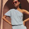 Ontdek de perfecte mix van casual en chic met de Joe Stripe Blouse. Deze blouse heeft een off-shoulder halslijn en een normale pasvorm die elke outfit naar een hoger niveau tilt. Het unieke ribpatroon en de gestreepte look maken het een must-have voor je garderobe.