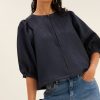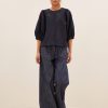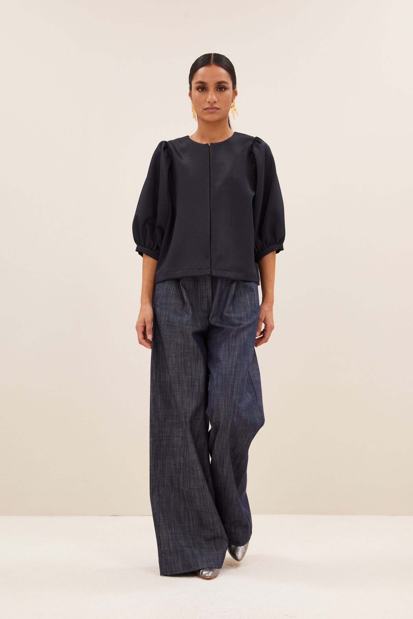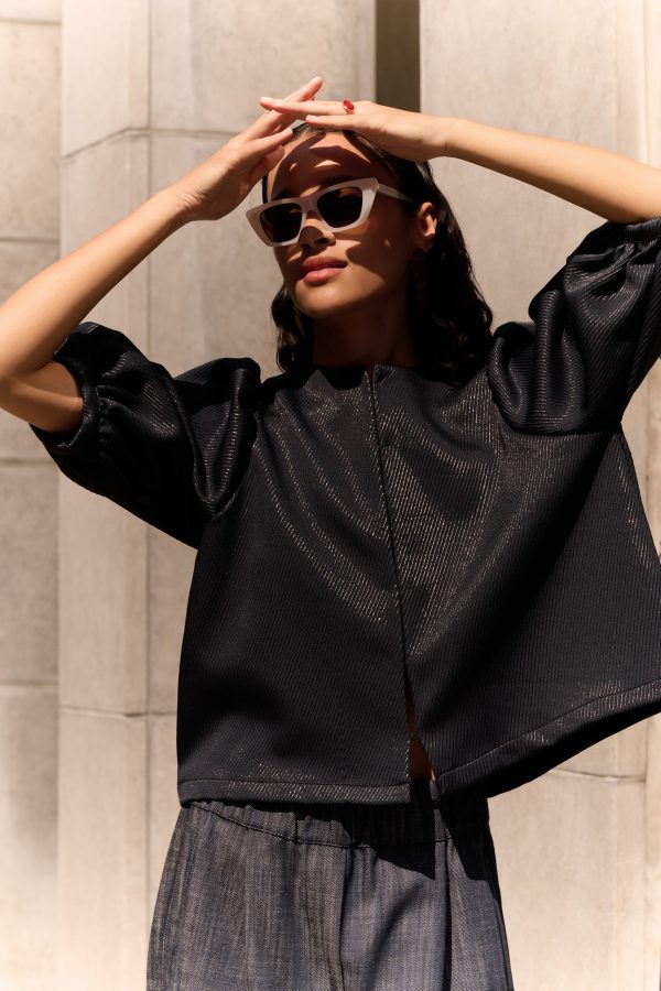Laat je betoveren door de mauri gloss stripe blouse, waar casual en elegantie samenkomen. De volumineuze mouwen geven een speelse flair. De subtiele, verborgen haak-en-oogsluiting maakt het geheel af, perfect voor momenten waarop je elegant wilt stralen.