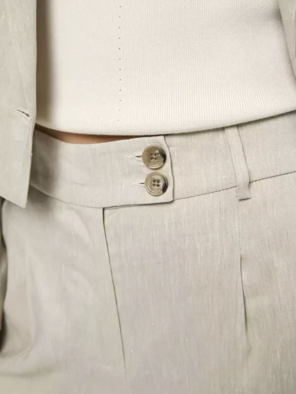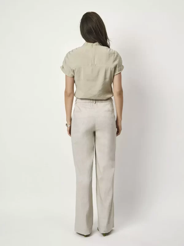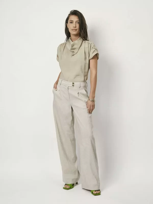 Onze linnen broek Zach is een limited piece; dit tijdloze item is de ultieme aanvulling op je garderobe. De klassieke, getailleerde broek met wijde pijpen heeft een bredere tailleband met twee knopen, riemlussen, plooien aan de voorkant en twee zakken aan de zijkant. Combineer hem met de bijpassende cropped blazer Acedia of met onze witte blouse Gilly.