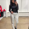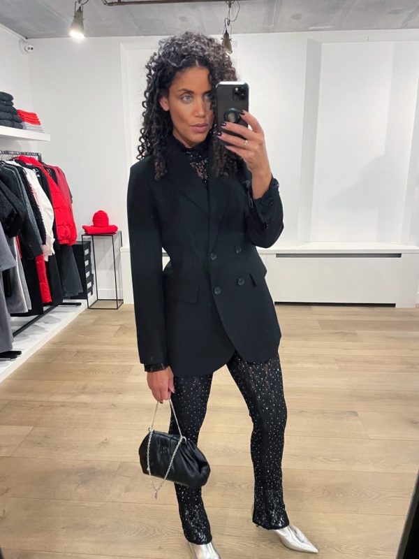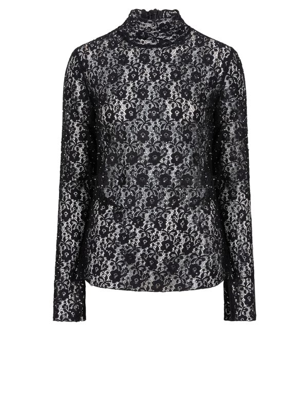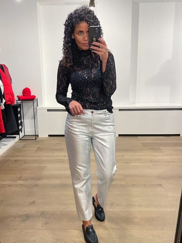 Mis de kant trend niet dit seizoen met onze zwarte Prebble top. Deze verfijnde kanten top is volledig versierd met strasssteentjes. Hij heeft een col en plooien aan de zijkanten. De lange mouwen hebben een subtiele split aan de uiteinden. Combineer hem met onze Adriël broek voor een verfijnde look.