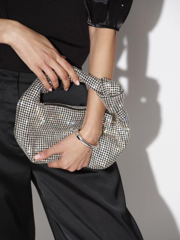 De Cristal tas in zilver is perfect voor feestelijke avonden. De compacte vorm, fonkelende rhinestones en ritssluiting maken dit de ideale finishing touch voor je partylook.