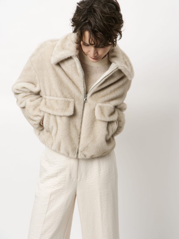 Onze faux fur bomberjas in Oatmeal Cream is het ultieme item om in weg te kruipen. De jas is gemaakt van faux fur polyester en volledig gevoerd. Het model heeft een grote kraag, een ritssluiting aan de voorkant en ruime klepzakken. Draag ‘m met onze animal print broek Spotted voor een echte signature Dante6 look.