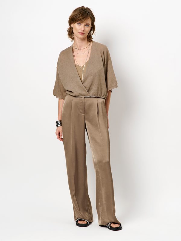 Dante6-Jules satijnen wijde broek taupe
