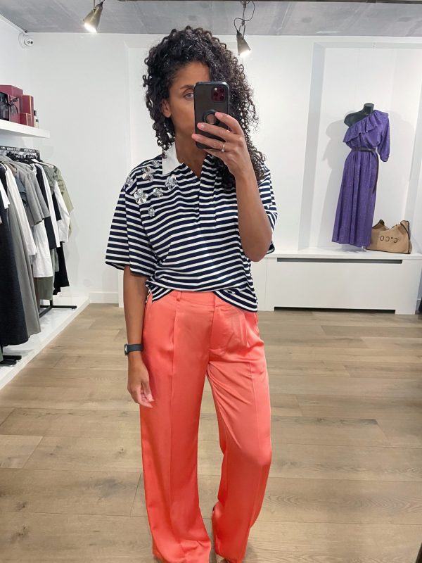 Onze stijlvolle Jules broek in de kleur Radiant Apricot raakt nooit uit de mode. Deze flatterende broek is gemaakt van 100% gerecycled polyestersatijn met mechanical stretch. De broek heeft een hoge taille en plooien aan de voorkant. Combineer hem met de bijpassende Rocco top voor een echte DANTE6 statement outfit.