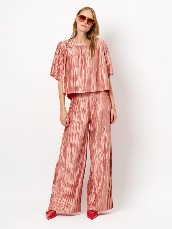 Kies dit seizoen voor onze Lelia top in Antique Blush. Deze veelzijdige top is gemaakt van een twisted plissé materiaal, wat zorgt voor een 3D look. De losse pasvorm, boothals en halflange mouwen maken dit het ideale item – van kantoor tot diner met vriendinnen. Maak de look compleet met de bijpassende Lilium broek in dezelfde kleur voor een tonale statement.