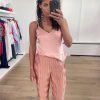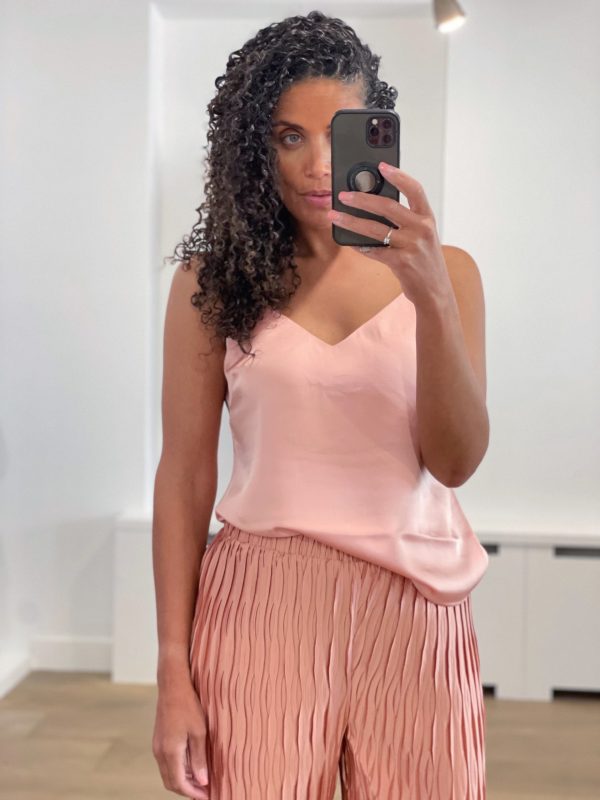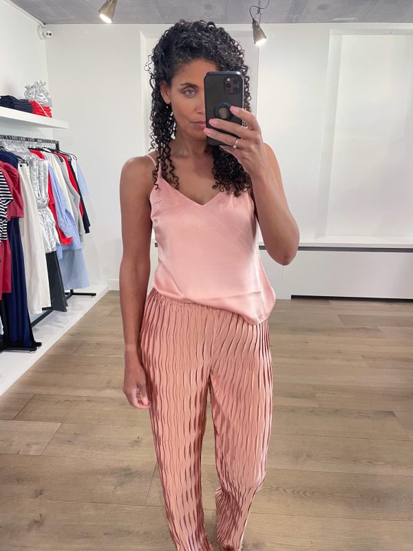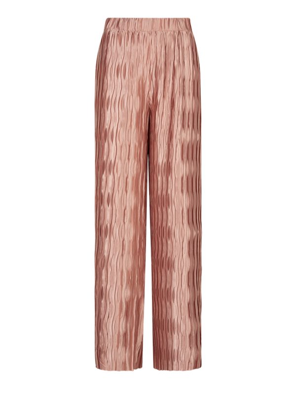 Kies dit seizoen voor onze Lilium broek in Antique Blush. Deze veelzijdige broek is gemaakt van twisted plissé materiaal, wat zorgt voor een rijke, gestructureerde look. De losse pasvorm met wijde pijpen maakt het een ideale stijl – van kantoor tot diner met vriendinnen. Maak de look compleet met de bijpassende top Lelia in dezelfde kleur voor een statement in kleur.