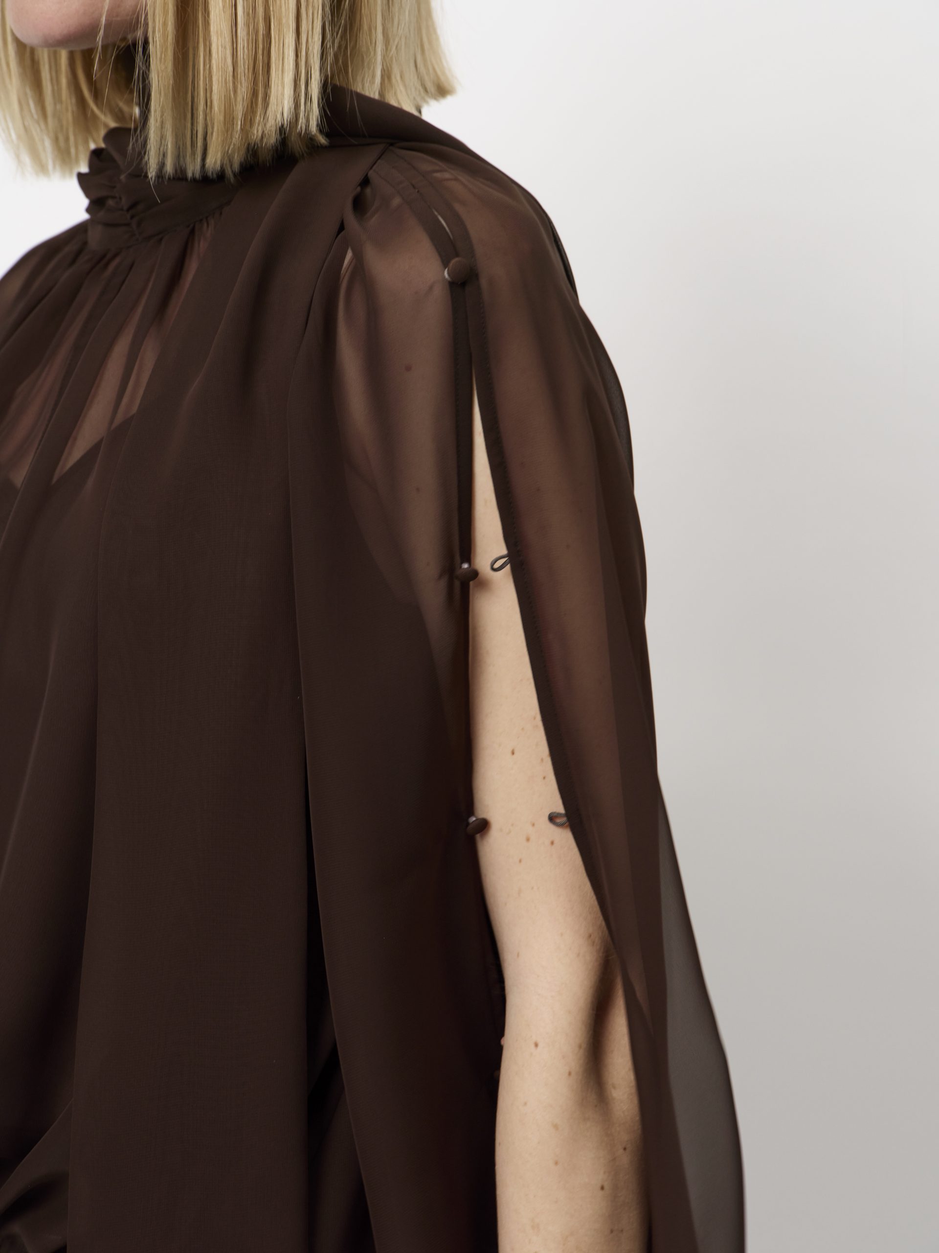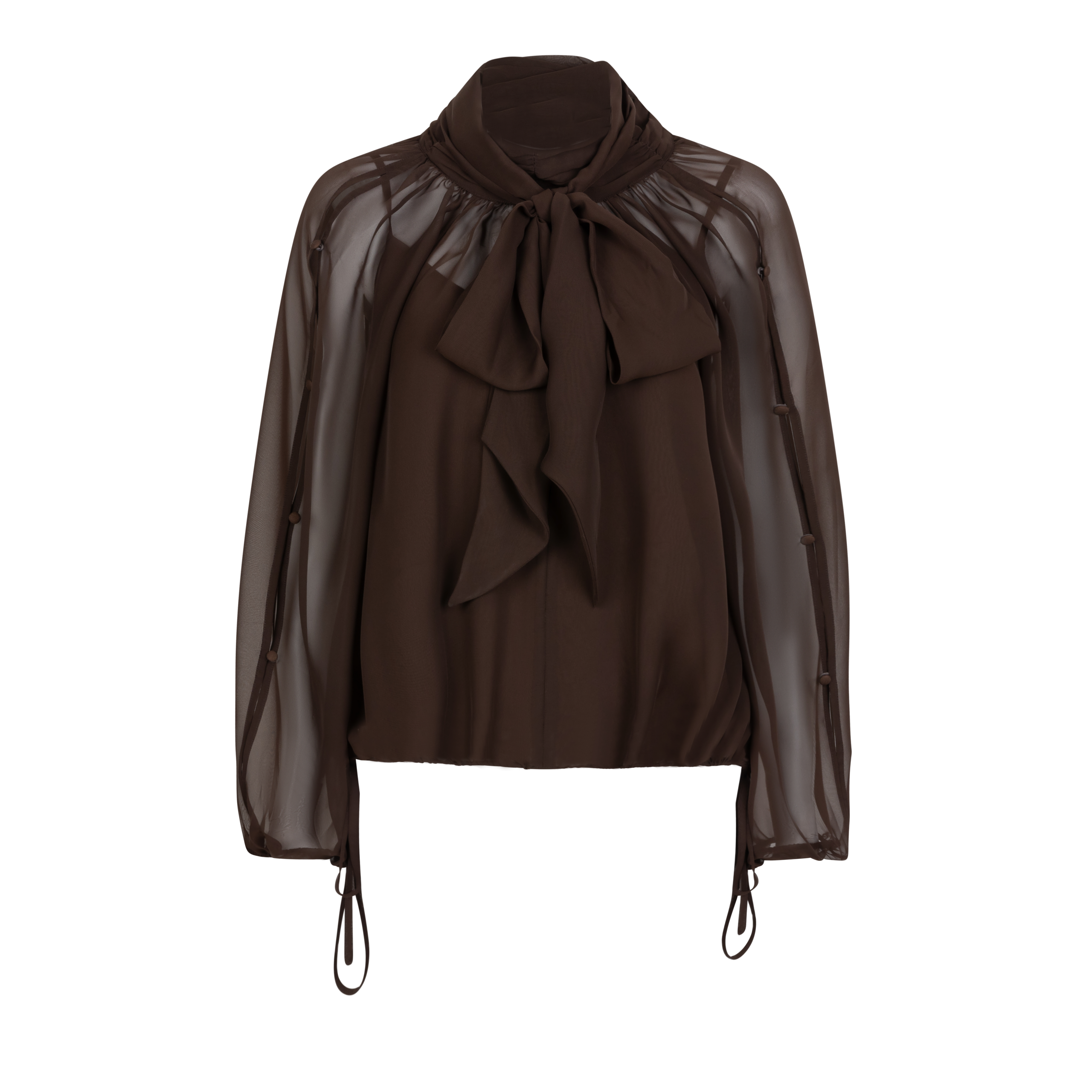 Een van onze kenmerkende vrouwelijke stijlen is de boho-geïnspireerde Sonia blouse in Espresso Brown. Deze chiffon blouse is gemaakt van fijne 100% polyester en wordt geleverd met een bijpassende top voor extra comfort en bedekking. De volumineuze pasvorm en de hoge halslijn met strikdetail zorgen voor een verfijnde uitstraling. De mouwen zijn afgewerkt met splitdetails en met stof beklede knopen voor een elegante textuur. Maak deze gedetailleerde blouse helemaal eigen en combineer ‘m met tonale trousers voor een coördinerende look.