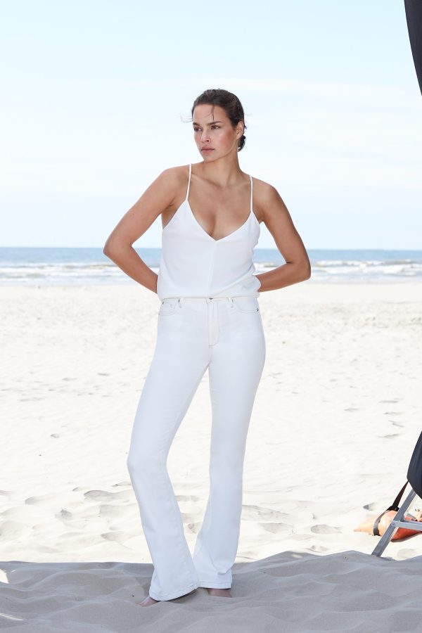 Our Jane – Colored Flared Jeans is available in a beautiful white colour. With stretch denim for a comfortable fit, these jeans elongate the legs with its elegant silhouette. With viscose for added softness, these are the perfect staple for any wardrobe. Wear them with our HOMAGE oversized hoodie and some stylish trainers for a casual comfy