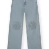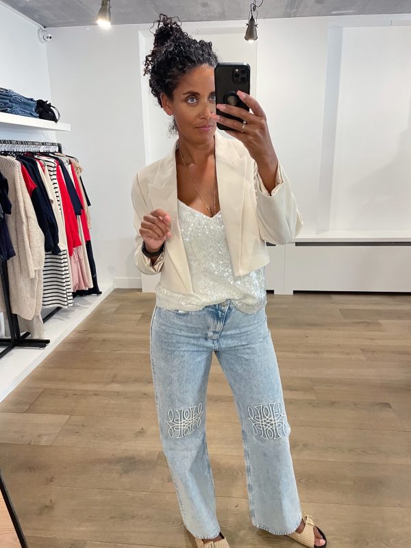 Onze ‘Straight Leg Jeans With Embroidery Detail’ is een perfecte closet staple met een leuke twist. De jeans hebben een wijde fit en een classic vintage denim wash. De knieën zijn gedetailleerd met een unieke statement embroidery detail. Stijl op een casual of chique manier en let the jeans shine!