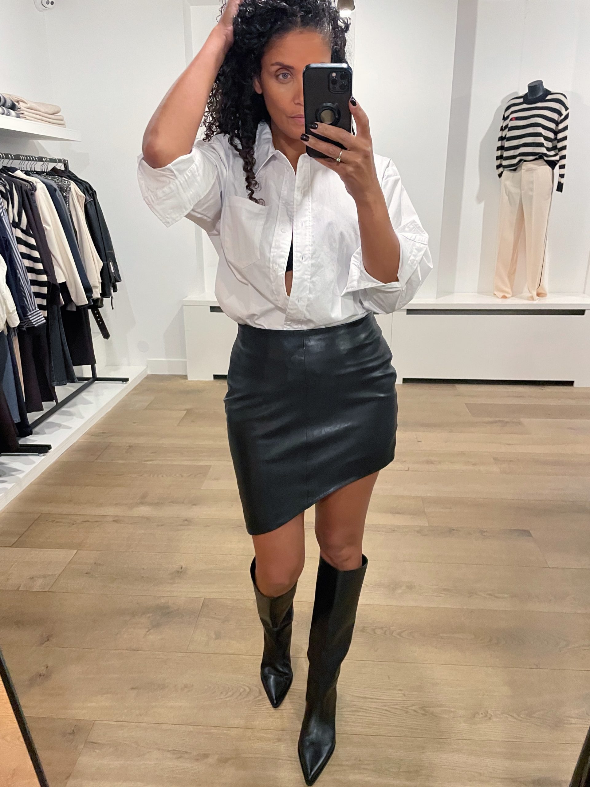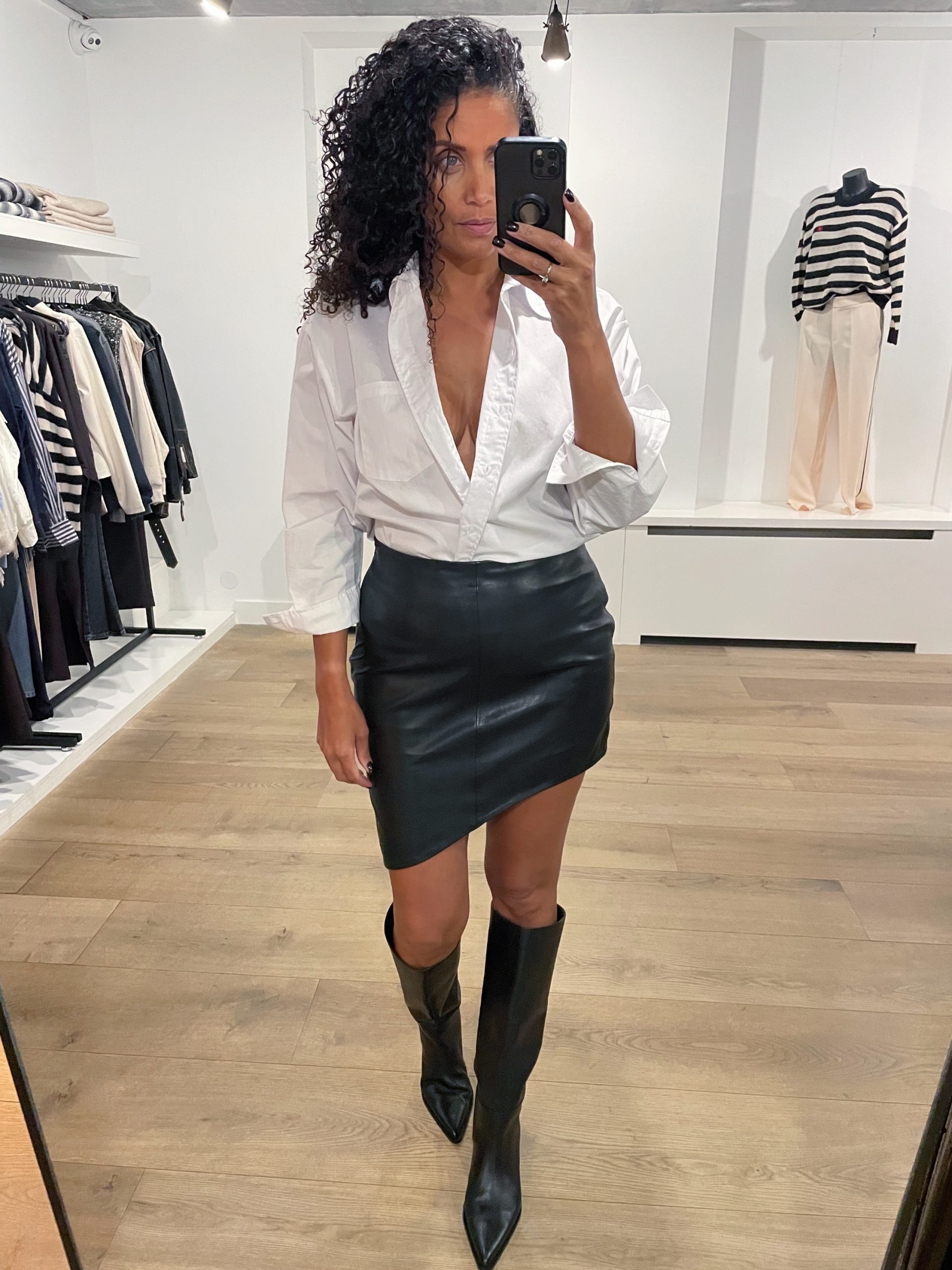 For a skirt that embodies both minimalist elegance and bold design, the Asymmetric Leather Skirt is the ultimate wardrobe investment.